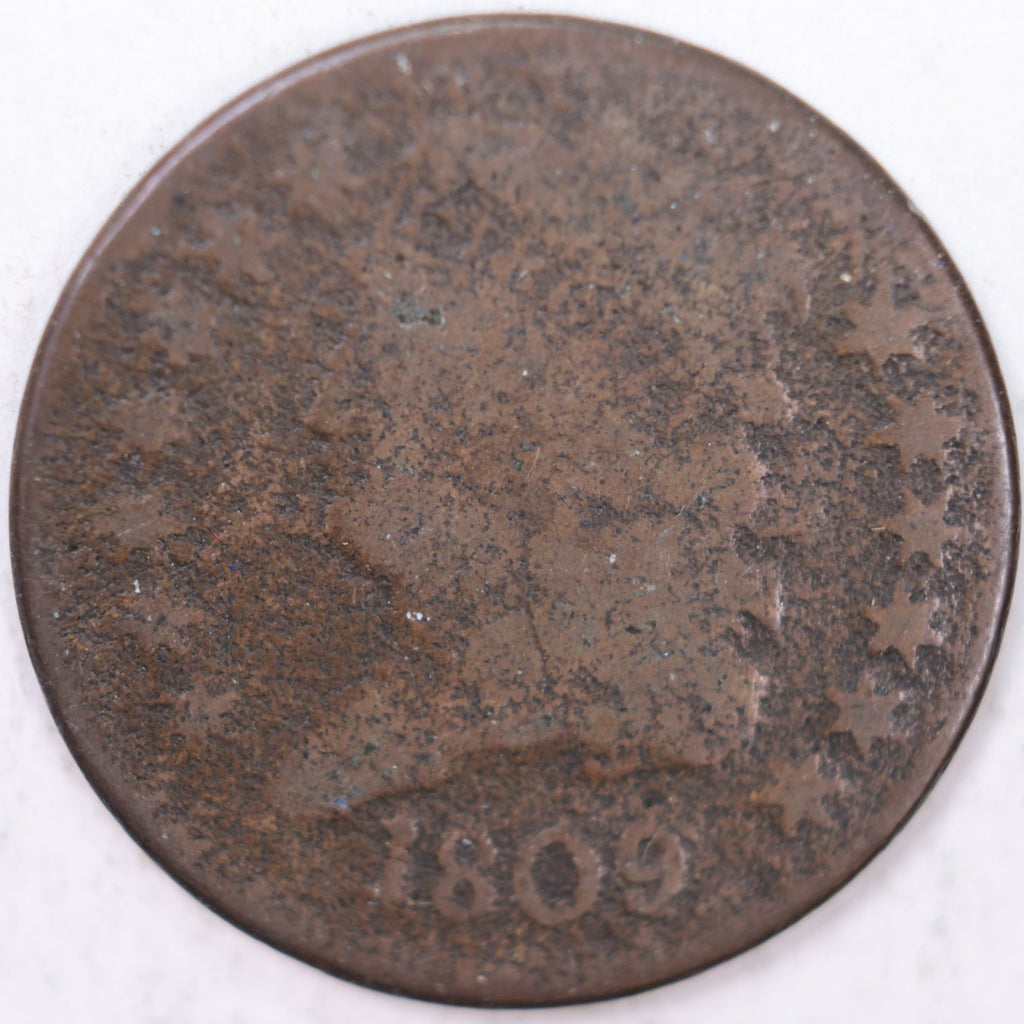 1809 Draped Bust Half Cent, Very Good Circulated Coin. Store #B809.02