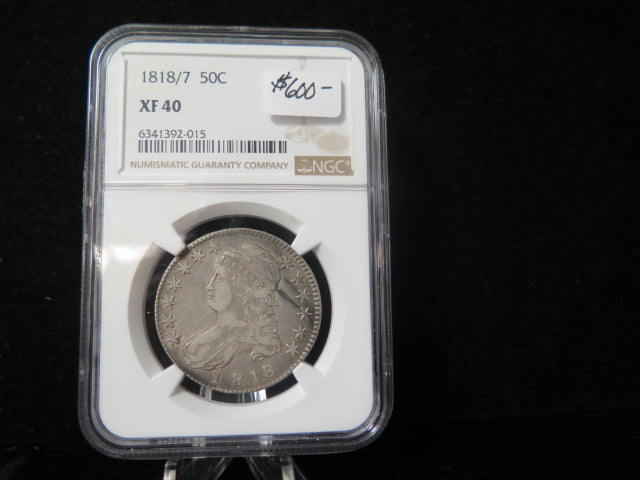 1818/7 Capped Bust Half Dollar, NGC Graded XF 40 Circulated Coin. Store #03307