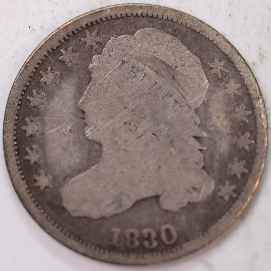 1830 Cap Bust Silver Dime, Very Good+ Circulated Coin, Store #d830.01