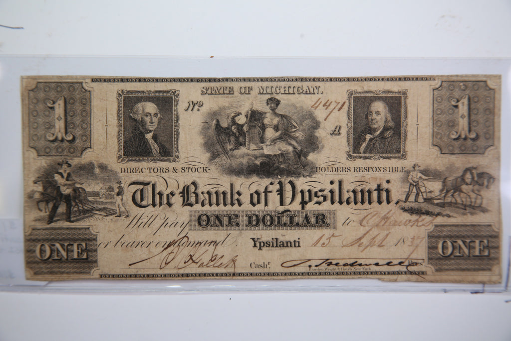 1837 $1, Ypsilanti, Michigan., Obsolete Currency, Store Sale 0932364.