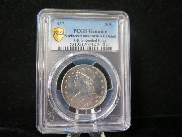 1837 Capped Bust Half Dollar, PCGS Genuine AU Detail Circulated Coin. Store #03320