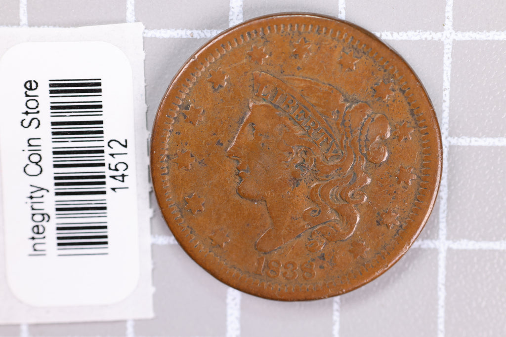 1838 Large Cent, Affordable Circulated Coin, Store Sale #14512