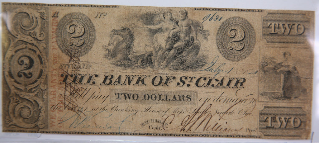 1840 $2, St Clair, Michigan., Obsolete Currency, Store Sale 0932431