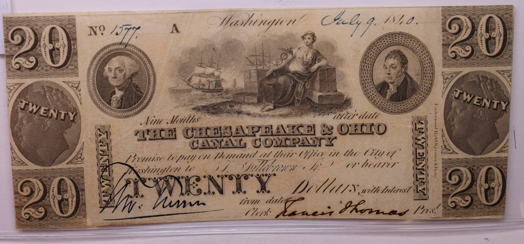 1840 $20., CHESAPEAKE & OHIO CANAL CO., STORE #18434