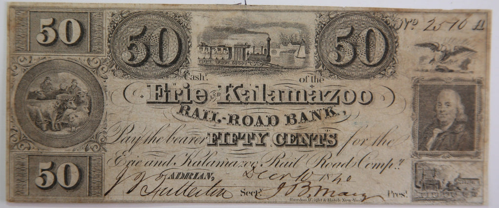 1840 .50 Cent Adrian, Michigan., Obsolete Currency, Store Sale 0932335.