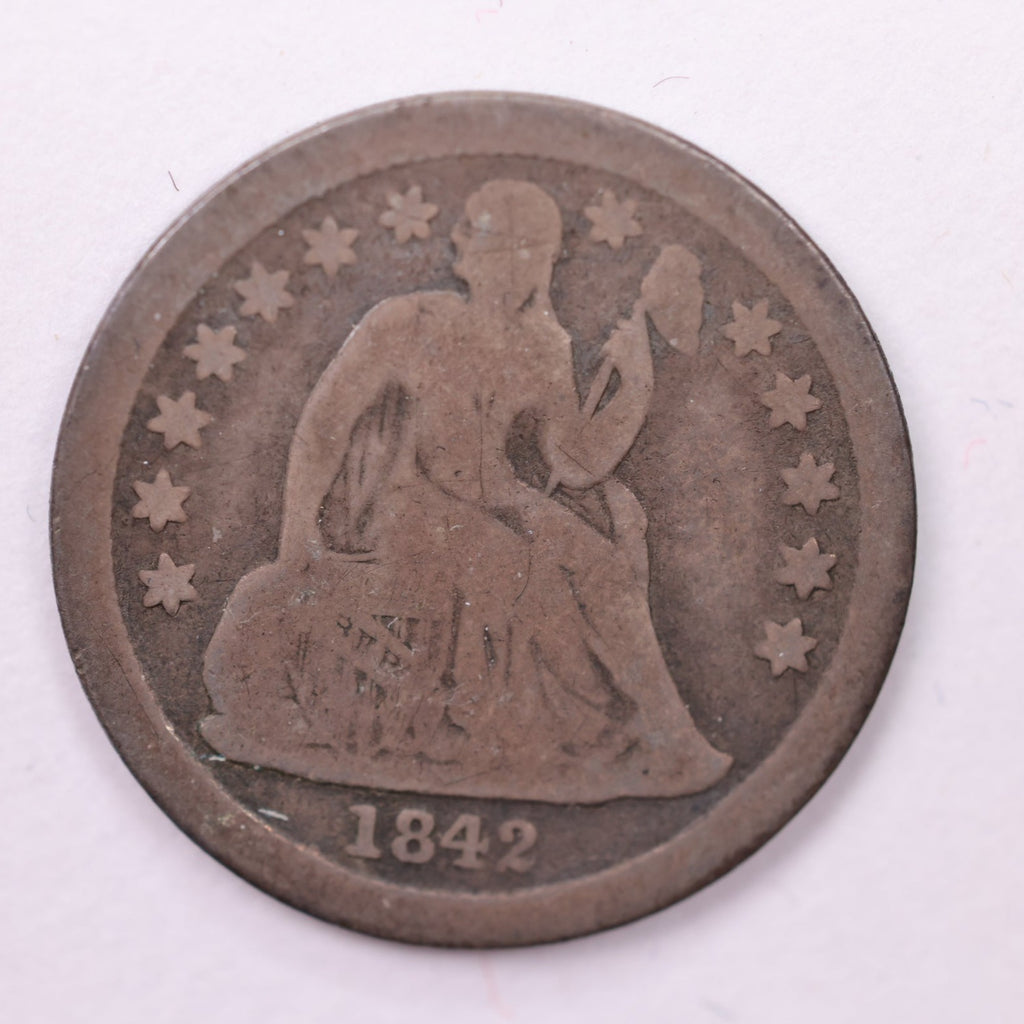 1842 Seated Liberty Silver Dime., Very Good., Store Sale #19005