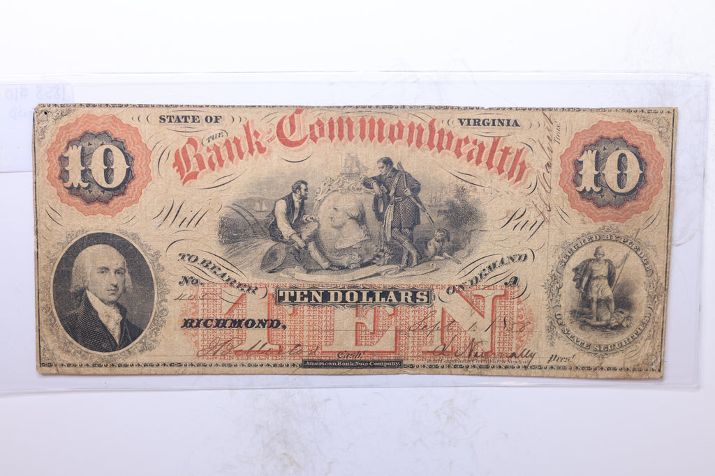 1843 $10, Bank of Commonwealth, Richmond, VA., Obsolete Currency., Store #2136