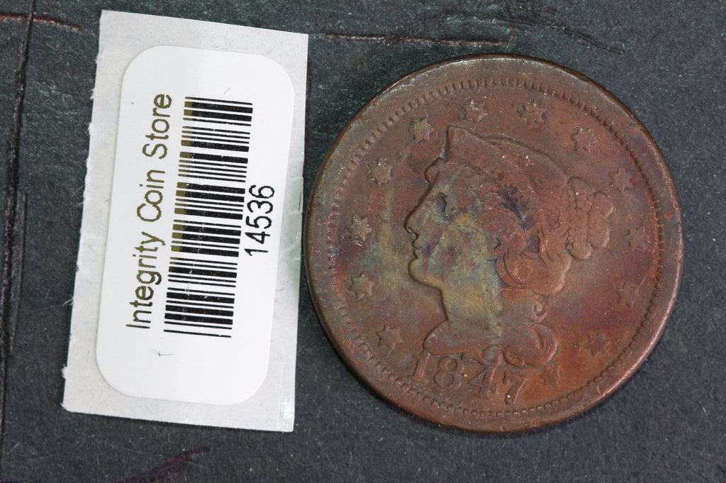 1847 Large Cent, Affordable Circulated Coin, Store Sale #14536