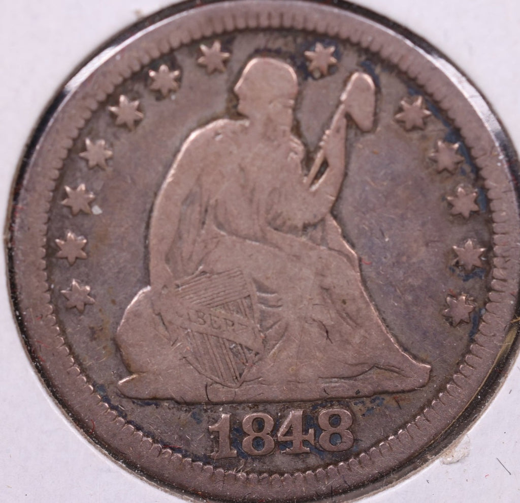 1848 Seated Liberty Quarter., Over Date., Very Fine Coin., Store#1067