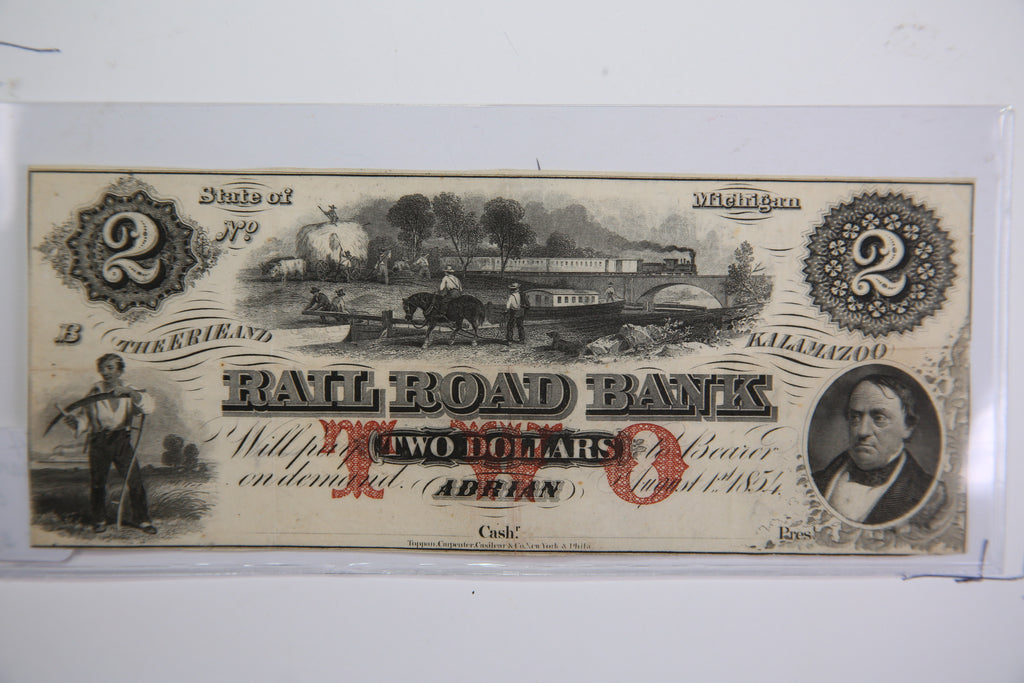 1854 $2 Adrian, Michigan., Obsolete Currency, Store Sale 0932324.
