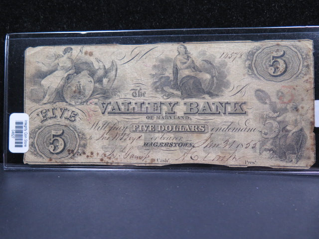 1855 $5 Obsolete Currency.