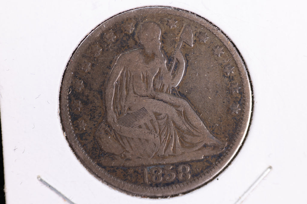 1858 Liberty Seated Half Dollar, Affordable Circulated Coin. Store Sale #23080923