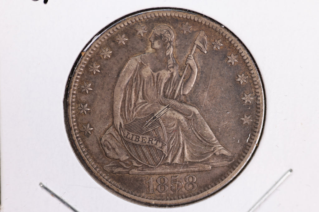 1858-O Liberty Seated Half Dollar, Affordable Circulated Coin. Store Sale #23080930