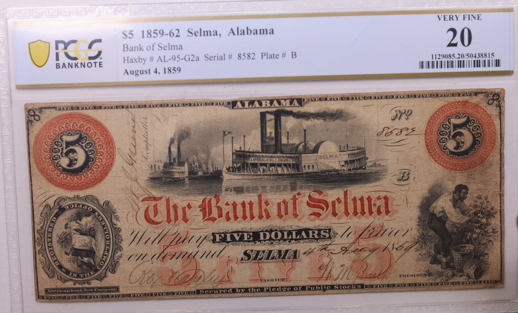 75 reviews for 1859 $5., Bank of Selma., Alabama., Obsolete., PCGS VF-20., Store #GAL001