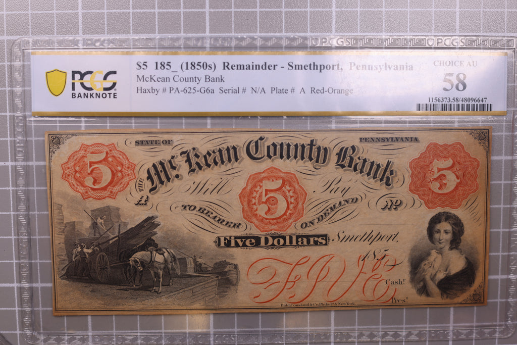 185_ $5., MCKEAN COUNTY BANK., Smethport, PA., Receipt., Store #GPA002