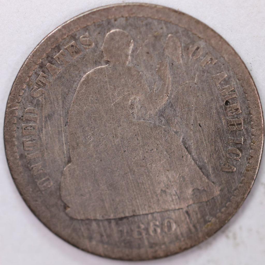 1860-O, Seated Half Dime, Very Good Circulated Coin, Store #M860O01