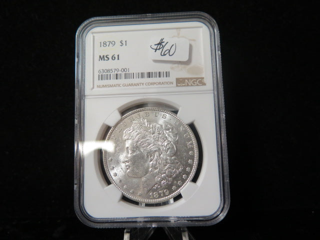 1879 Morgan Silver Dollar, NGC Graded MS 61. Store #03079