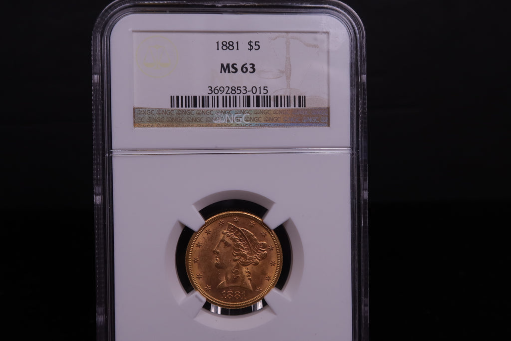 1881 $5 Half Eagle, NGC Certified MS-63