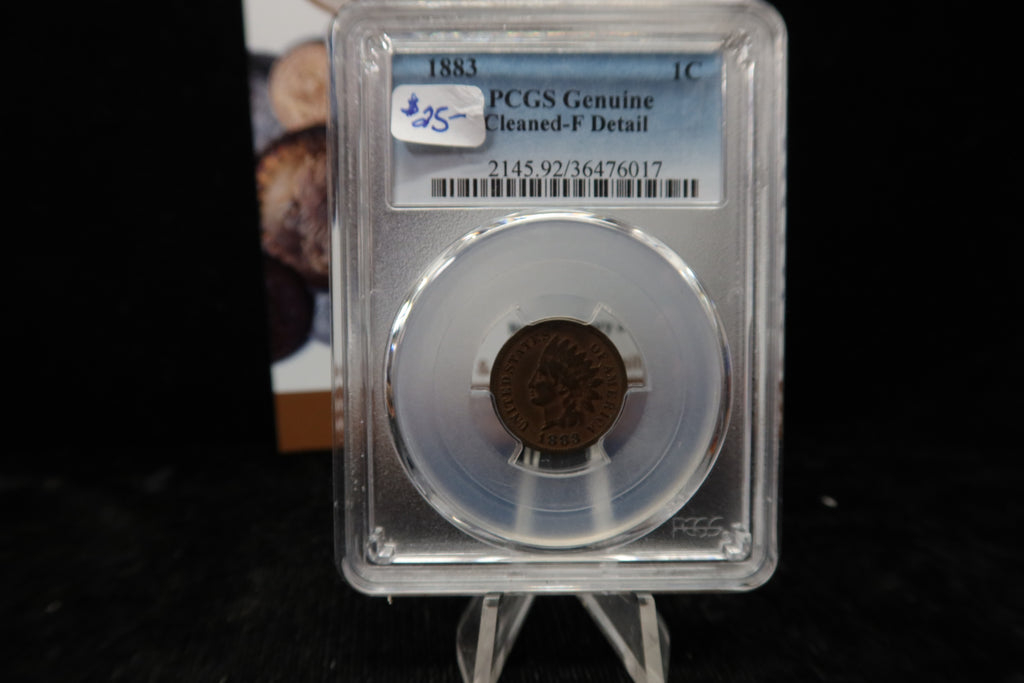 1883 Indian Head Small Cent. PCGS Graded Cleaned-F Detail. Store # 08505
