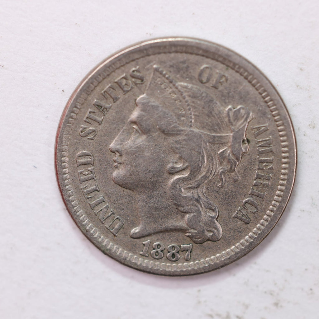 1887 3 Cent Copper Nickel., About Uncirculated Coin., Store #2216
