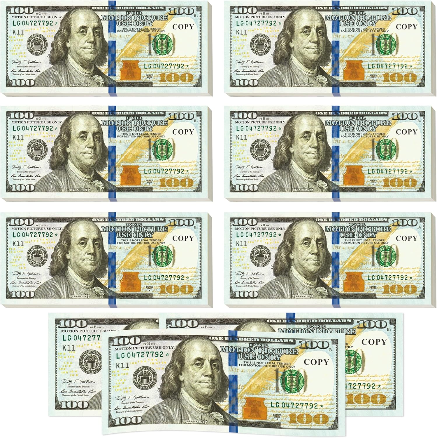 - 【What You Get】- You will get 300 pieces of prop set in 8 denominations: 1, 5, 10, 20, 50, 100, 500, 1000 and our prop size is 3.74 x 1.77 in.