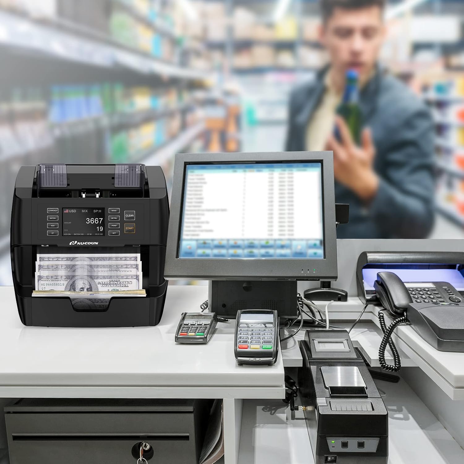 9 reviews for NUCOUN VC-3 Money Counter Machine Mixed Denomination, Value Counting, CIS/UV/IR/MG/MT Counterfeit Detection, USD/Euro/CAD/MXN, Printer Enabled Bill Cash Counter for Business